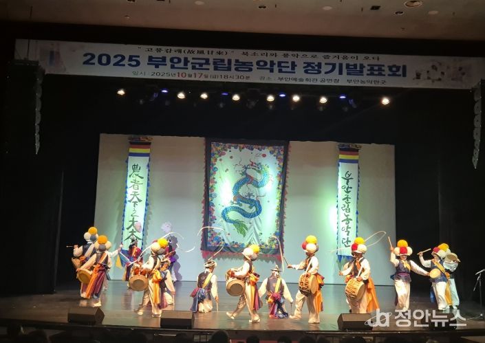 정안뉴스 안정주 기자 | 부안군립농악단은 지난 10월 17일 오후 6시 30분, 부안예술회관 2층 공연장에서 열린 2025년 부안군립농악단 정기발표회를 군민들의 큰 호응 속에 성황리에 마쳤다.