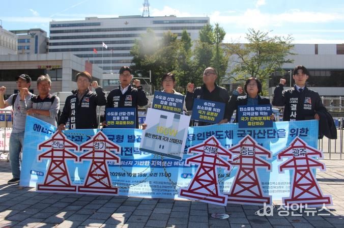 정안뉴스 안정주 기자 | 송전선로 및 LNG발전소 건립반대 안성시 범시민대책위원회가 15일, 용산 대통령실 앞에서 열린 송전선로 반대 기자회견에 참여해 목소리를 보태고, 이재명 정부에 용인 반도체 국가산단을 위한 송전선 건설을 전면 재검토할 것을 요구했다. 기자회견에는 정효양 범시민대책위 위원장과 이용성 사무국장, 강우전 송전선로 분과위원장 등 범시민대책위와 안성시의회 황윤희·이관실 의원도 참여했다. 이들은 기자회견 후 국회 토론회도 참석, 용인 국가반도체산단을 위한 전력집중 문제를 함께 살폈다.