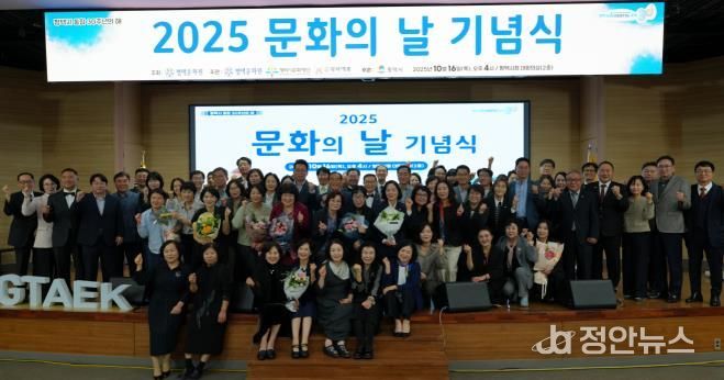 정안뉴스 안정주 기자 | ‘2025 문화의 날 기념식’을 10월 16일 오후 4시, 평택시청 대회의실에서 성황리에 개최했다. 이번 행사는 평택문화원이 주최하고, 평택문화원·평택시문화재단·(사)평택예총이 공동 주관했으며, 평택시가 후원했다.