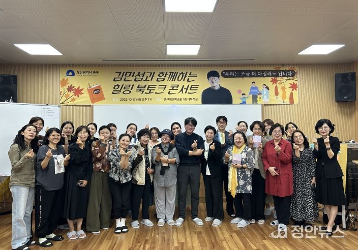 정안뉴스 황정혜 기자 | 부산 중구는 지난 17일 중구 평생학습관에서 제5회 부산 중구 평생학습주간의 일환으로 '작가와 함께하는 힐링 북토크 콘서트'를 개최했다.