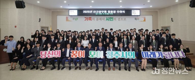 이 시장은 “오늘의 주인공은 신규공무원 여러분이지만, 이 자리를 함께해주신 가족분들이야말로 진정한 동반자이자 버팀목”이라며 “청주시민들의 행복을 최우선으로 하는 열정 있고 따뜻한 공직자가 되어달라”고 당부했다.