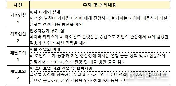 이어진 토론 세션에서는 국내외 전문가들이 패널로 참여해 ➊AI로 인한 산업 구조 전환과 정책 과제, ➋AI 스타트업의 글로벌 시장 진출 전략과 정책 과제에 대한 민관 전문가의 경험을 공유하고 대응방향을 논의했다.