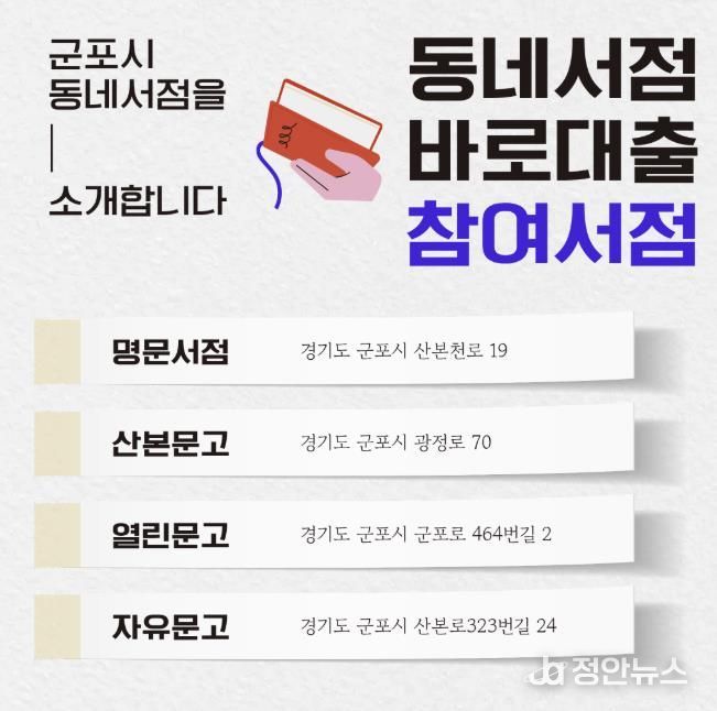 정안뉴스 안정주 기자 | 군포시는 2021년부터 도서관에 소장되지 않은 신간 도서를 시민이 가까운 동네서점에서 직접 대출·반납할 수 있는 ‘동네서점 바로대출 서비스’를 운영하고 있다.