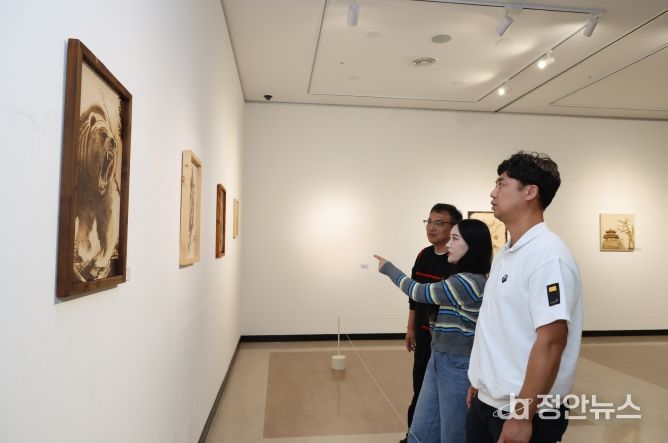 정안뉴스 안정주 기자 | 무주군이 다양한 전시회를 열어 가을 방문객들을 손짓하고 있다. 무주최북미술관에서는 오는 10월 30일까지 “빛과 나무의 대화-무주in 인두화 展”이 개최된다.