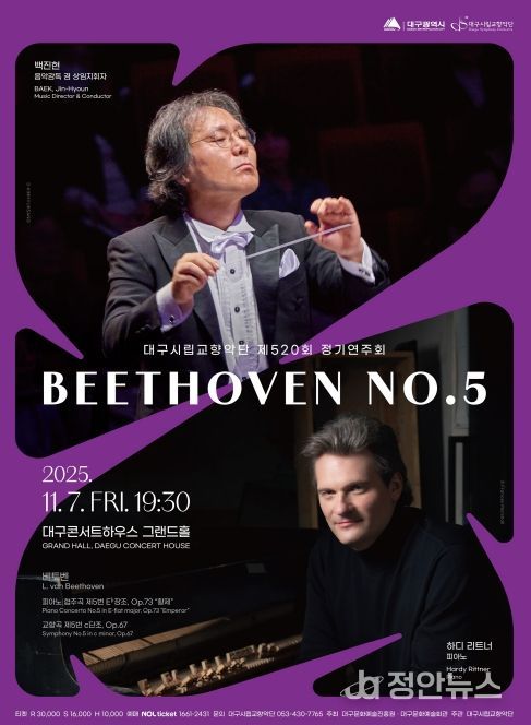 정안뉴스 안정주 기자 | 대구시립교향악단이 오는 11월 7일 오후 7시 30분, 대구콘서트하우스 그랜드홀에서 ‘제520회 정기연주회’를 개최한다.