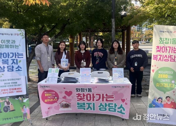 정안뉴스 안정주 기자 | 고양특례시 덕양구 화정1동은 지난 22일, 덕양구청 사회복지과와 고양시 원당종합사회복지관과 함께 복지 사각지대 발굴을 위한 ‘찾아가는 복지상담소’를 운영했다.