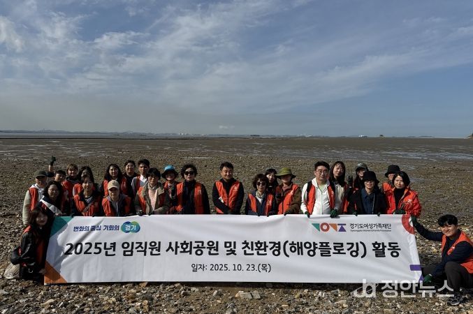 정안뉴스 안정주 기자 | 경기도여성가족재단은 23일 화성시 고온항 및 궁평항 일대에서 임직원 36명이 참여한 가운데 ‘2025년 사회공헌 및 친환경 활동’(해양 플로깅)을 펼쳤다.