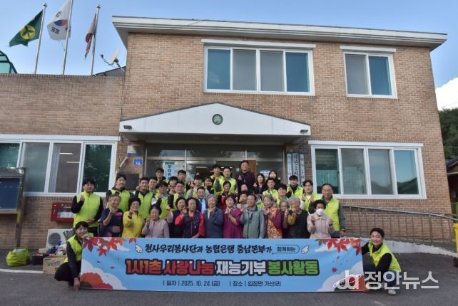 정안뉴스 황도연 기자 | 천안도시공사는 24일 천안시 입장면에서 ‘1사1촌 사랑나눔 재능기부 봉사활동’을 추진했다고 밝혔다.
