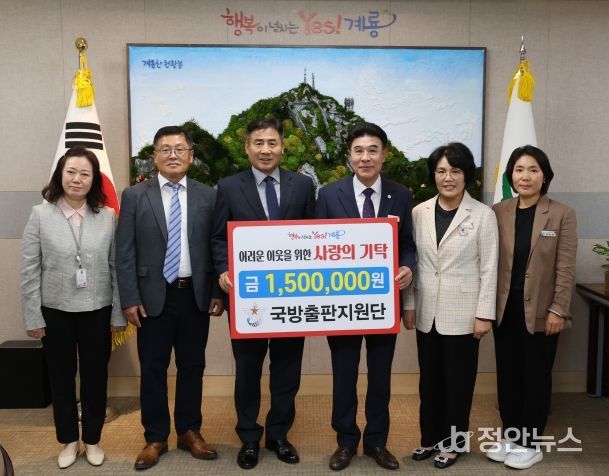 정안뉴스 황도연 기자 | 계룡시는 지난 24일 국방출판지원단(단장 신기진)으로부터 현금 150만 원을 기탁받았다고 밝혔다.