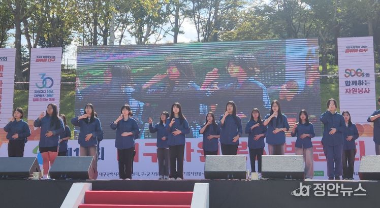 정안뉴스 안정주 기자 | 대구서부교육지원청은 10월 25일 두류공원 2.28자유광장에서 열린 ‘대구자원봉사박람회’에 초록봉사단 소속 ‘하모니수어합창단’ 41명이 참여했다고 밝혔다.
