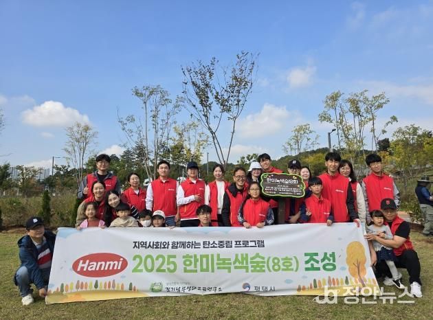 정안뉴스 안정주 기자 | 평택시와 한미그룹은 지난 25일 함박산 중앙공원에서 한미그룹 임직원과 가족 등 50여 명이 참여한 가운데 ‘한미녹색숲(8호)’조성 행사를 개최했다.