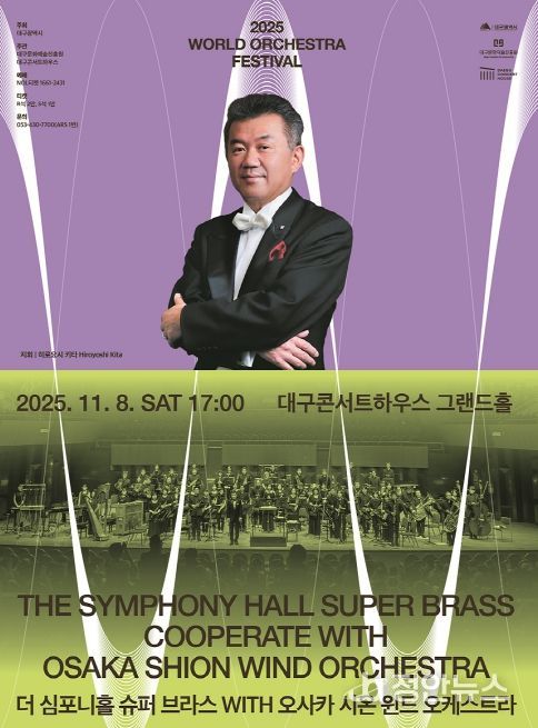 정안뉴스 안정주 기자 | 대구콘서트하우스는 오는 11월 8일 오후 5시, 월드오케스트라페스티벌의 일환으로 ‘더 심포니홀 슈퍼 브라스 WITH 오사카 시온 윈드 오케스트라’ 공연을 개최한다.