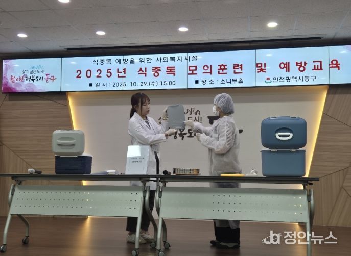 정안뉴스 안정주 기자 | 인천 동구는 지난 29일 구청 소나무홀에서 식중독 대응 역량 강화를 위한 ‘식중독 발생 현장대응 모의훈련 및 식중독예방 특별교육’을 진행했다고 밝혔다.