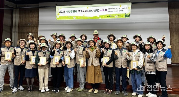 정안뉴스 황은경 기자 | 청주시는 지난달 31일 상당구 내덕동 동부창고에서 ‘2025년 시민정원사 양성교육 수료식’을 열고 정원문화 확산의 주역이 될 시민정원사 29명을 배출했다.