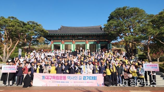 정안뉴스 안정주 기자 | 광복회 대구광역시지부(지부장 우대현)는 2025년 11월 1일 오전 9시 국립신암선열공원에서 출발하여 조양회관(광복회관)까지 걷는 ‘2025 대구독립운동 역사의 길 걷기대회’ 행사를 가졌다. 참가자들은 먼저 국립신암선열공원 단충사에 헌화, 분향한 후 우대현 지부장의 대회 개회 선포로 걷기에 나섰다.