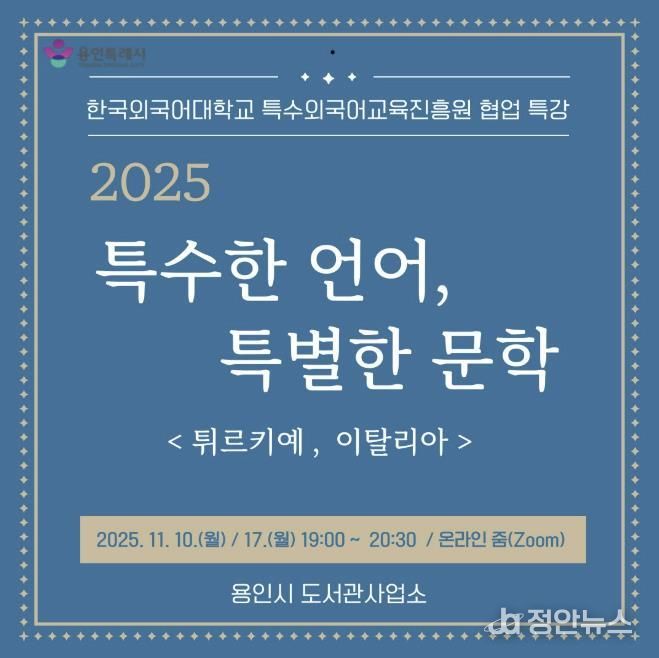 정안뉴스 안정주 기자 | 용인특례시는 11월 10일과 17일 온라인 줌을 통해 시민을 위한 온라인 인문학 강연 ‘특수한 언어, 특별한 문학’을 운영한다고 3일 밝혔다.
