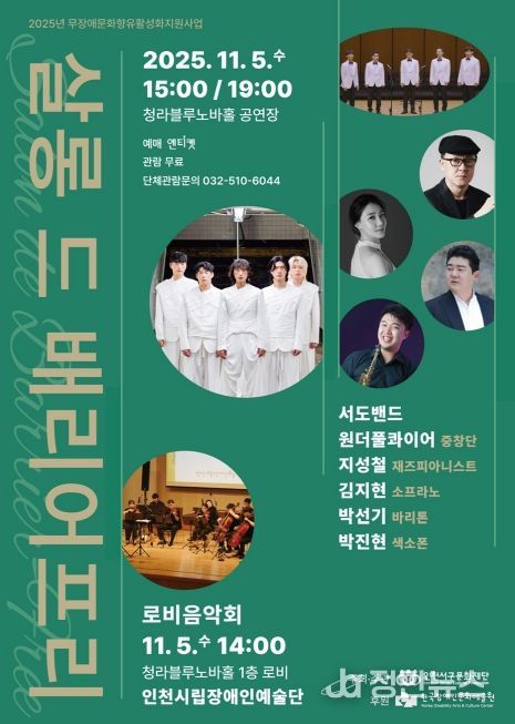 (재)인천서구문화재단은 10월 30일부터 11월 5일까지 배리어프리 전시 '공존'전과 11월 5일 배리어프리 공연 '살롱 드 배리어프리'를 청라블루노바홀에서 개최한다.