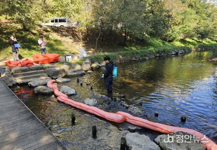 정안뉴스 안정주 기자 | 인천시 남동구는 만수동 장수천에서 수질오염사고 대응 역량 강화를 위한 자체 방제 훈련을 했다고 3일 전했다.