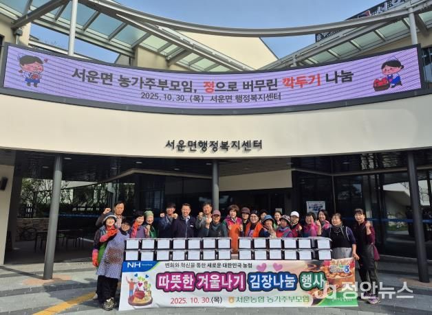 정안뉴스 안정주 기자 | 10월 30일 서운면 농협 농가주부모임은 지역 내 어려운 이웃들을 위한 ‘따뜻한 겨울나기 김장 나눔 행사’를 실시했다.