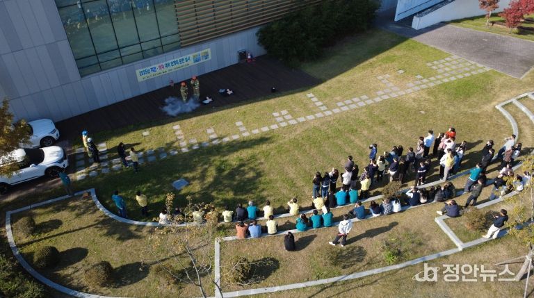 정안뉴스 안정주 기자 | 완주군이 4일 군 본청 공무원과 방문 민원인 전체가 참여한 가운데 ‘11월 합동소방훈련 및 지진‧화재대비 민방위 대피 훈련’을 실시했다.