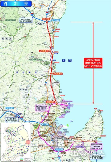 정안뉴스 안정주 기자 | 국토교통부와 한국도로공사는 동해고속도로 포항–영덕 구간을 11월 8일 오전 10시 개통한다.