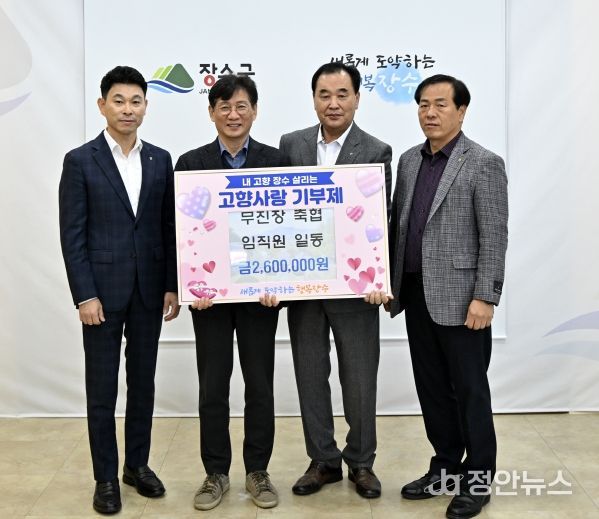 정안뉴스 안정주 기자 | 무진장축산업협동조합(조합장 송제근) 임직원들이 재작년과 작년에 이어 올해에도고향사랑기부제 활성화를 위해 장수군에 고향사랑기부금 240만 원을 기탁했다.