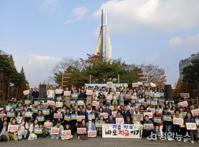 정안뉴스 안정주 기자 | 11월 9일 일산문화광장에서 ‘산황산 골프장 증설 반대 시민문화제가’ 200여명의 시민들이 참석한 가눙데 열렸다. 이번 문화제는 고양시 대표적인 생태 녹지인 산황산 일대 골프장 증설 계획에 반대하는 시민들의 의지를 모르기 위해 마련된 것으로, 지역내 시민사회단체, 종교단체, 정당등이 공동주관했다.