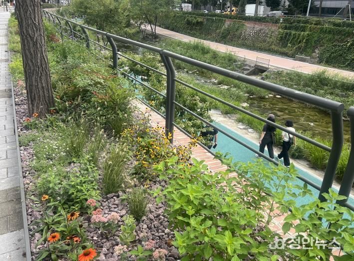 정안뉴스 안정주 기자 | 서울 성북구가 그동안 하천 제방 보도의 안전난간으로 접근이 어려웠던 기존 화단을 정비해, 시민들이 자연을 더욱 가까이에서 즐길 수 있는 개방형 수변공간을 새롭게 조성했다고 밝혔다.