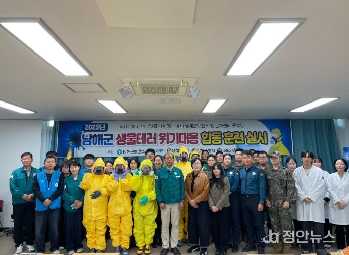 정안뉴스 김재홍 기자 | 남해군은 지난 7일 남해군보건소 치매안심센터와 남해문화센터 인근 풋살장에서 ‘2025년 생물테러 위기대응 합동 모의훈련’을 실시했다.