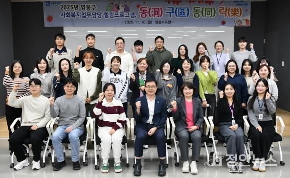 정안뉴스 안정주 기자 | `25년 11월 10일, 영통구는 영흥수목원에서 사회복지담당 공무원 힐링 프로그램, ‘동(洞)구(區)동(同)락(樂)’을 진행했다. 이 프로그램은 과중한 업무로 인한 정서적 피로와 스트레스를 해소하고 직원들의 심신 회복을 지원하기 위해 마련됐으며, 구/동 직원 30명이 참여했다.