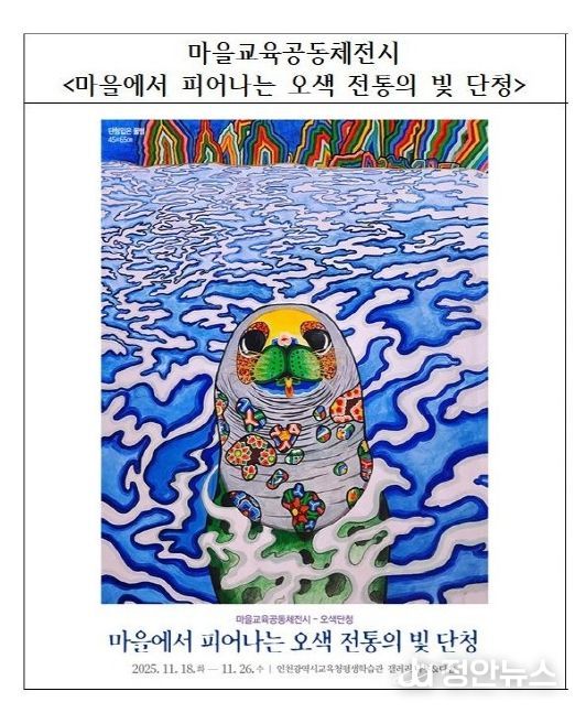 정안뉴스 안정주 기자 | 인천광역시교육청평생학습관은 11월 18일부터 26일까지 평생학습관 2층 갤러리 나무와 다솜에서 ‘마을에서 피어나는 오색 전통의 빛 단청’ 전시를 개최한다.