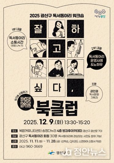 정안뉴스 안정주 기자 | 광주 광산구가 12월 9일 송정다누리센터에서 독서 문화 교류의 장인 독서동아리 워크숍을 개최한다.