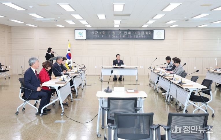 정안뉴스 안정주 기자 | 고성군의회는 지난 10일, 의회 회의실에서 2025년 11월 첫 번째 의원 월례회를 열고 주요 군정 현안에 대한 집행부의 보고를 청취했다.
