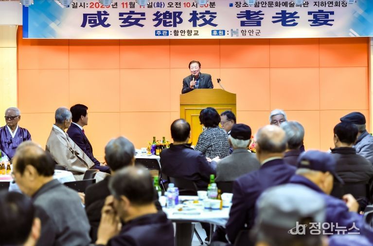 정안뉴스 김재홍 기자 | 함안군은 지난 11일 함안문화예술회관 연회장에서 70세 이상 지역 유림과 어르신을 모시고 함안향교 주관으로 ‘기로연 행사’를 열었다고 밝혔다.