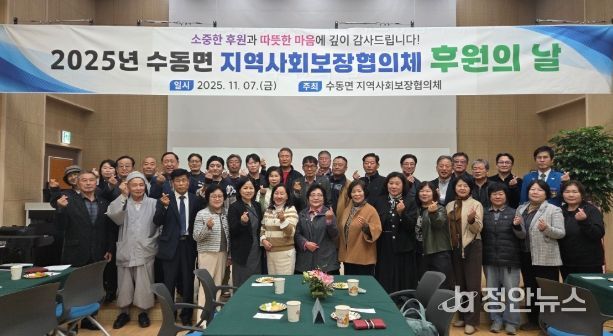 이진춘 수동면장은 “오늘 행사는 수동면 복지의 중심에 서 있는 지역사회보장협의체와 후원자분들의 헌신에 감사의 마음을 전하는 자리”라며 “주민이 함께 참여하고 나누는 복지공동체로 발전할 수 있도록 행정에서도 적극적으로 지원하겠다”고 전했다.