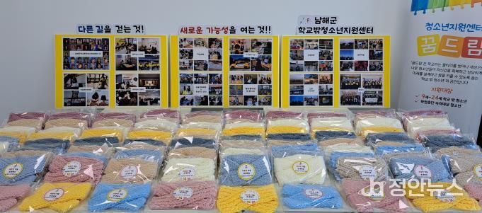 정안뉴스 김재홍 기자 | 남해군 학교밖청소년지원센터 봉사동아리가 11일 지역 내 홀몸 어르신들을 위해 직접 제작한 목도리 100개를 기부했다.