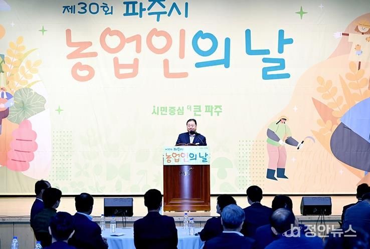 김경일 파주시장은 “고물가, 이상기후, 농촌 고령화 등 어려운 여건 속에서도 안전한 먹거리를 위해 파주시 농업을 지켜온 농업인 여러분께 깊은 감사와 존경의 마음을 전한다”라며 “앞으로도 농업인의 안정적 소득과 지속 가능한 농업 발전을 위해 다양한 지원 정책 마련에 최선을 다하겠다”라고 말했다.