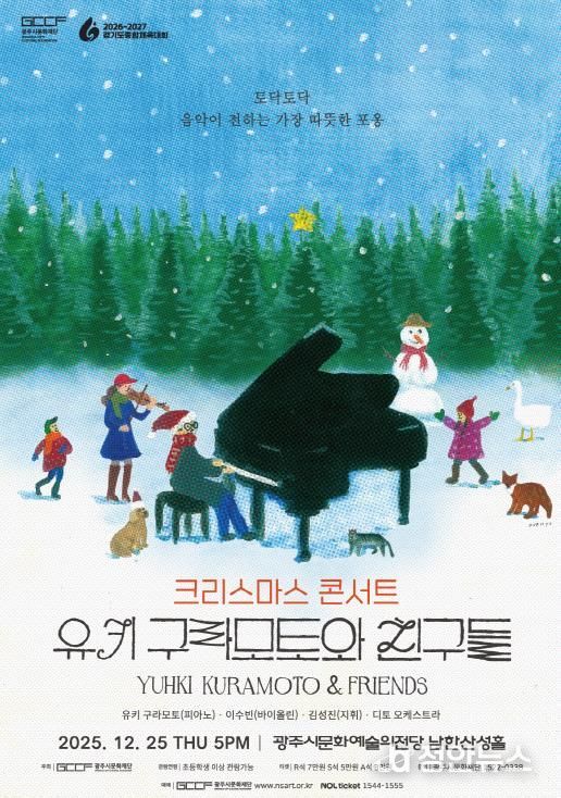 정안뉴스 안정주 기자 | (재)광주시문화재단은 오는 12월 25일 오후 5시, 광주시문화예술의전당 남한산성홀에서 ‘2025 크리스마스 콘서트 '유키 구라모토와 친구들'을 개최한다.