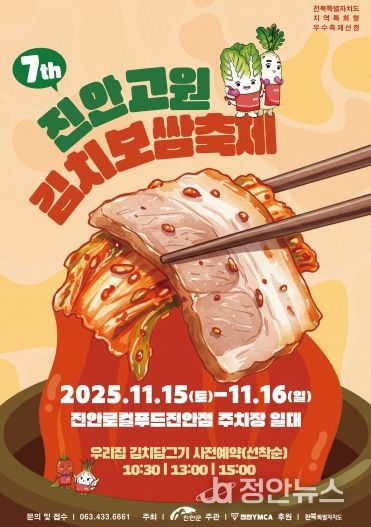 정안뉴스 안정주 기자 | 진안군은 오는 11월 15일에서 16일까지 이틀간 로컬푸드 직매장 진안점(진안군 진안읍 학천변길 37-9) 일원에서 ‘진안고원 김치보쌈 축제’를 개최한다.