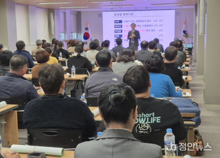 정안뉴스 안정주 기자 | 대구 남구는 최근 강화된 안전보건 정책에 발맞춰 관내 발주공사현장, 도급·용역·위탁사업 수급업체 사업주 및 관계자 60여 명을 대상으로 지난 11월 6일 중대재해예방 교육을 실시했다고 밝혔다.