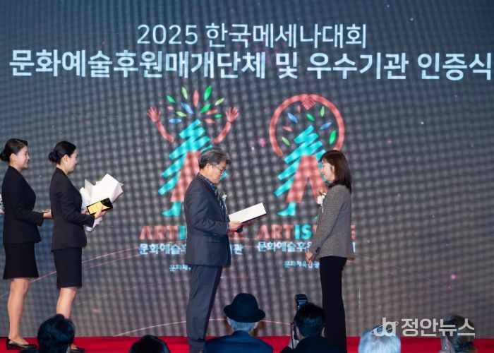 정안뉴스 안정주 기자 | 광주문화재단은 11월 11일 서울에서 열린'2025년도 문화예술후원매개단체 및 문화예술후원우수기관 인증식'에서 문화체육관광부와 한국문화예술위원회로부터 ‘문화예술후원매개단체 신규 인증서’를 수여받았다.