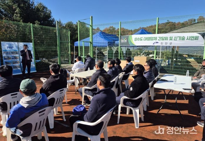 정안뉴스 안정주 기자 | 진안군은 지난 11일 산약초 타운에서 관내 상하수도 대행업체 대표 및 실무자, 상하수도과 관계자 등 50여명이 참석한 가운데 ‘상하수도 대행업체 간담회 및 신기술 시연회’를 개최했다.
