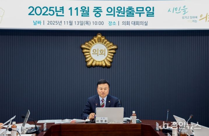 정안뉴스 황도연 기자 | 당진시의회는 13일 의회 대회의실에서 ‘11월 중 의원출무일’을 개최했다고 전했다.
