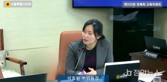 정안뉴스 안정주 기자 | 서울특별시의회 교육위원회 소속 이효원 의원(국민의힘, 비례)이 지난 10일 제333회 정례회 서울시교육청 교육정책국 정책 질의에서 서울시 교원의 성비위·음주운전 등 매년 계속되는 중대 범죄 현황에 대해 지적하고 사안에 비해 가볍게 처분되는 징계 수위에 대해 실질적인 대책을 요구했다.