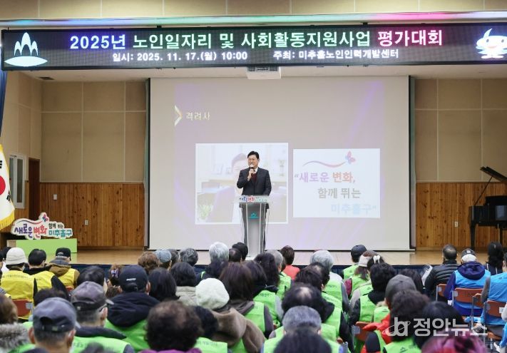 정안뉴스 안정주 기자 | 인천 미추홀노인인력개발센터는 지난 17일 구청 대회의실에서 ‘2025년 노인 일자리 및 사회활동 지원사업 종합 평가대회’를 성황리에 개최했다.