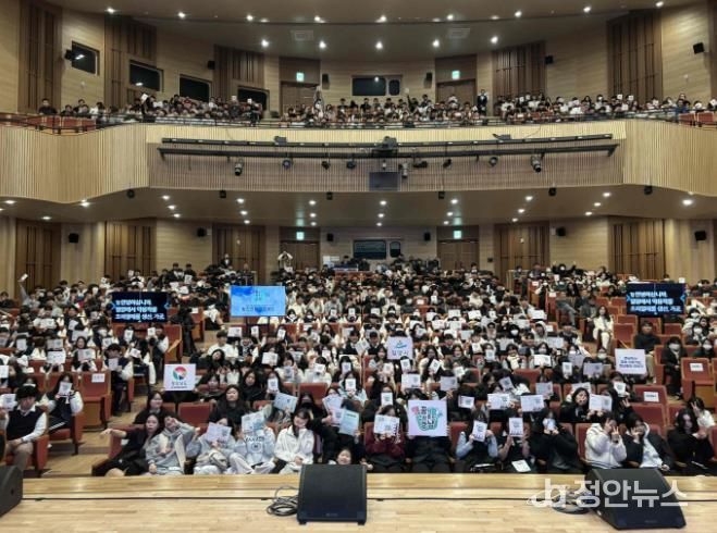 정안뉴스 김재홍 기자 | 경남 밀양시는 18일 밀양아리랑아트센터 대공연장에서 지역 내 중·고등학생 700여 명이 참여한 가운데 ‘2025년 청소년 진로지원을 위한 토크콘서트’를 성황리에 개최했다고 밝혔다.