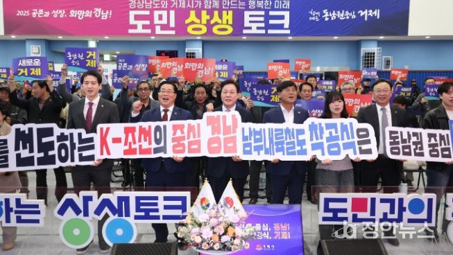 정안뉴스 김재홍 기자 | 경상남도는 18일 거제 반다비체육센터에서 열린 ‘도민 상생토크’에서 기업혁신파크, 광역교통망, 미래산업 등을 연계한 성장전략을 제시하며 지원 의지를 밝혔다.