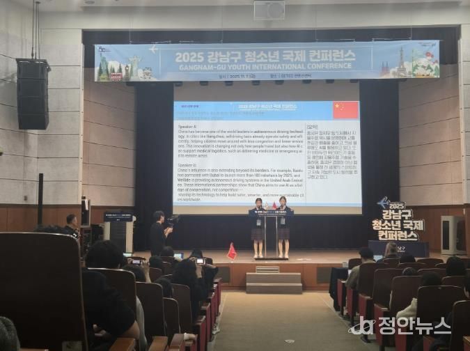 정안뉴스 안정주 기자 | 꿈이 모이는 도시, 미래를 그리는 강남구가 지난 11월 7일 SETEC 컨벤션센터에서 개최한 ‘청소년 국제 콘퍼런스’가 성공적으로 마무리됐다. 관내 중학생을 대상으로 생성형 인공지능(AI)과 영어를 활용해 글로벌 이슈에 대해 특정 국가의 입장을 대변하도록 구성된 이번 대회는 단순한 말하기 대회를 넘어 ‘AI 시대 세계시민 교육’의 새로운 출발점이 됐다는 평가를 받았다.