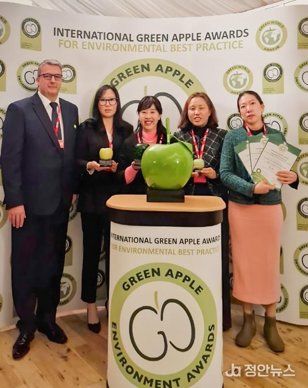 정안뉴스 안정주 기자 | 서울 서초구가 현지시각 17일 영국 런던 웨스트민스턴 국회의사당에서 열린 ‘2025 그린애플어워즈(Green Apple Awards)’ 시상식에서 대상(Champion)을 포함해 총 3관왕을 달성했다고 밝혔다.
