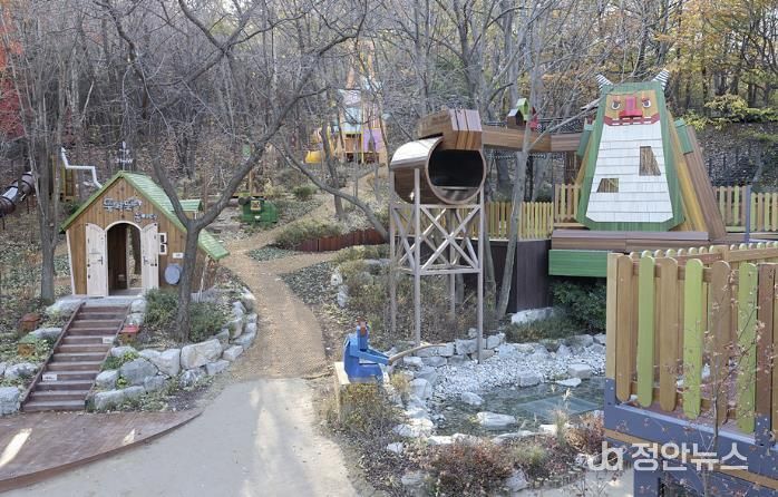 아이들이 초안산 숲속 장소를 탐험하며 모험심을 기를 수 있는 다양한 놀이구조물도 배치돼 있다. 또 자연을 활용한 놀이 공간도 마련돼 있다.